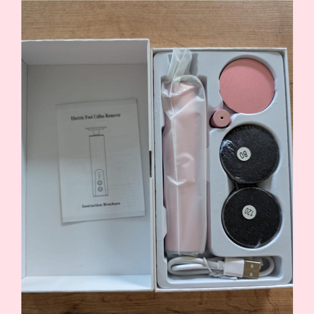 Cette râpe électrique est à la fois jolie (en rose gold) et efficace. Elle se recharge par USB, tient bien en main et propose 6 vitesses pour s’adapter aux différents besoins. Les feuilles abrasives se collent directement sur l'appareil, ce qui est pratique, et deux types de grains sont fournis (plus ou moins abrasifs selon l’état de la peau). Parfait pour entretenir régulièrement les talons secs ou légèrement fendillés. En usage régulier, il est top. Peu bruyant et bonne autonomie. Je recommande !